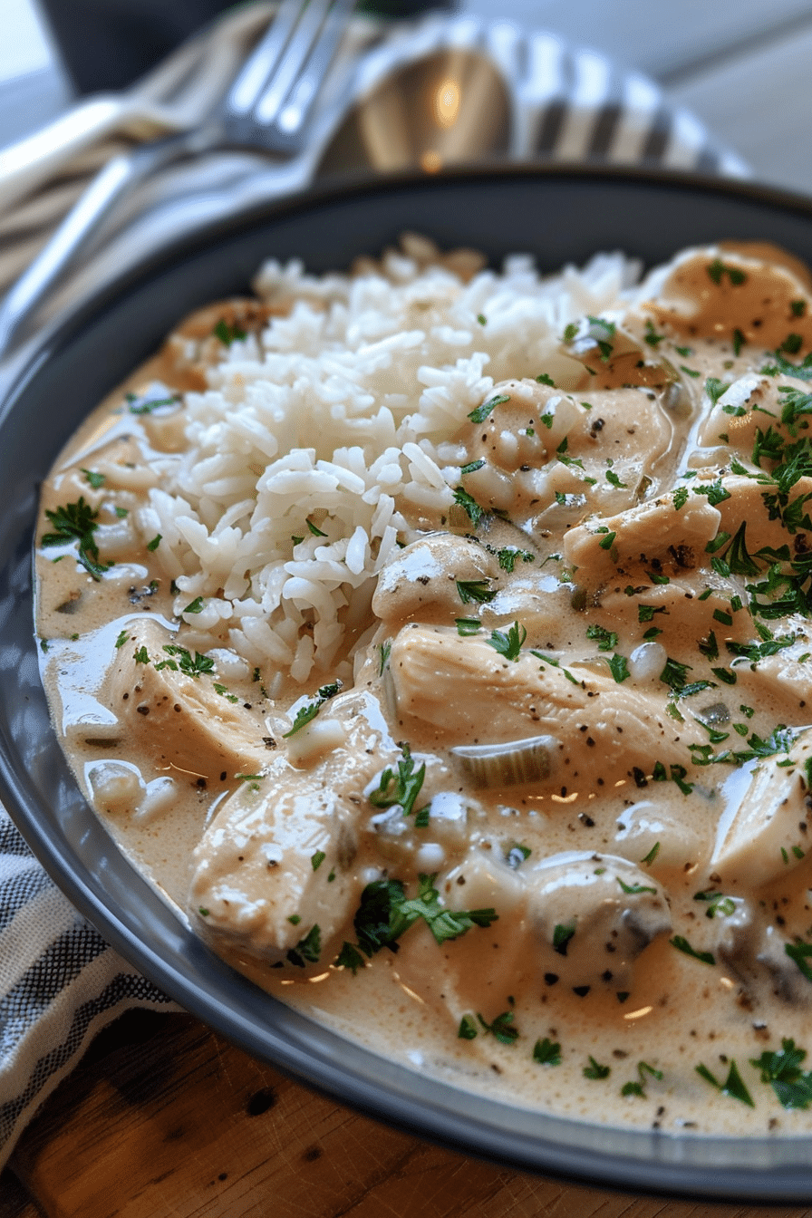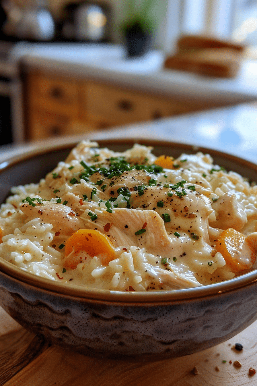 A rich one-pot meal blending tender chicken, perfectly cooked rice, and a velvety dairy-based sauce for a comforting and satisfying family dinner. Balanced flavors and minimal cleanup make it an easy weeknight staple.