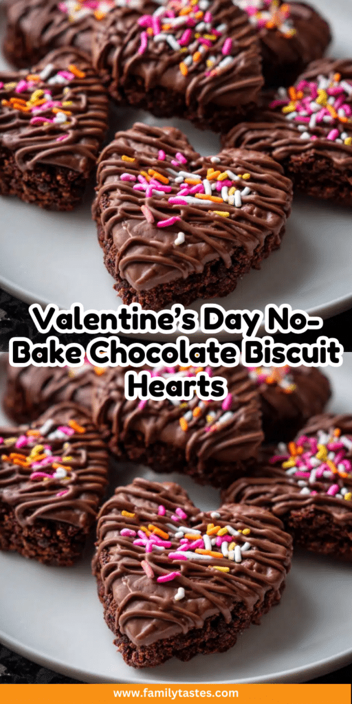 Every Valentine’s Day, I fall in love all over again, with these ridiculously easy no-bake chocolate biscuit hearts! There’s something magical about turning simple pantry staples into sweet little edible gifts that make people’s eyes light up. No oven? No problem! My kitchen counter becomes a chocolate workshop where I whip up batches of these rich, crumbly treats in about 20 minutes flat. I’ve been making variations of this recipe for years, for galentine brunches, kids’ classroom parties, even last-minute “oops-I-forgot-Valentine’s” moments. The best part? Watching friends break into that first buttery, chocolatey bite and instantly understand why these little hearts became my signature February tradition.