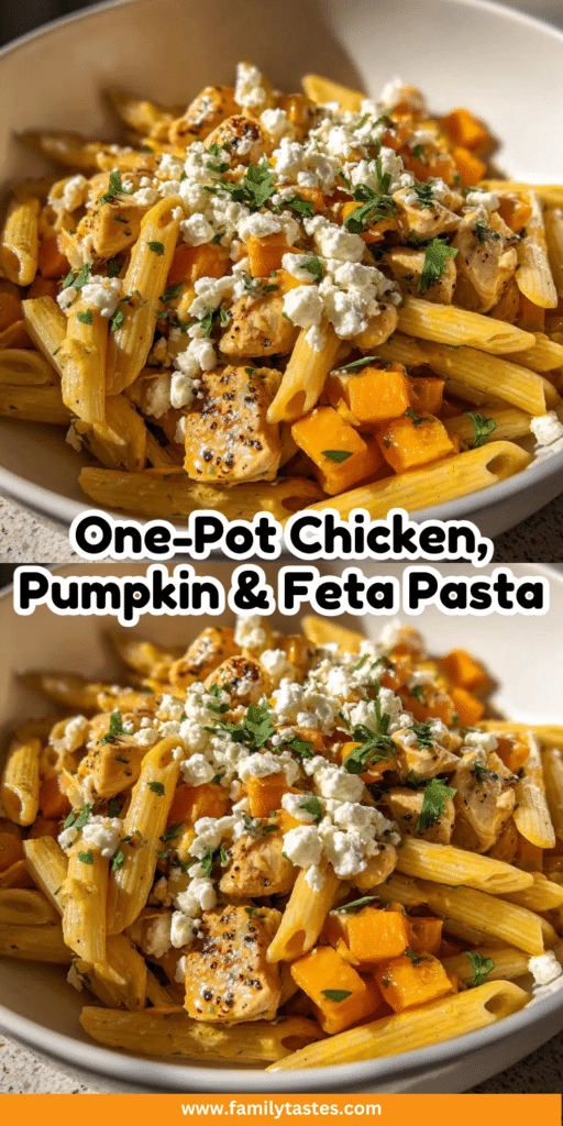 Oh my gosh, you have to try this One-Pot Chicken, Pumpkin & Feta Pasta, it’s become my absolute go-to weeknight dinner! I stumbled upon this combo last fall when I had half a pumpkin sitting on my counter and zero energy for complicated cooking. The magic happens when everything cooks together in one pot, the chicken gets so tender, the pumpkin melts into this creamy sweetness, and that salty feta? Perfection.