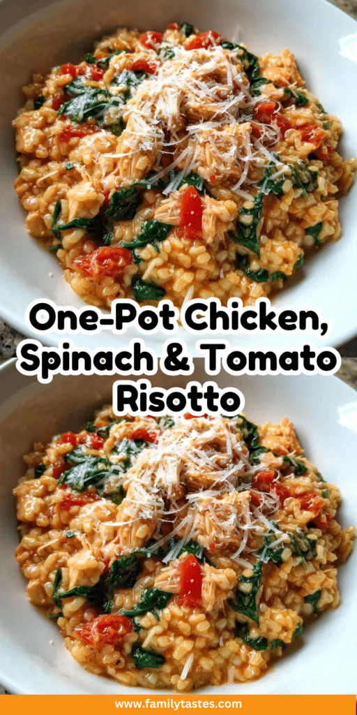 Oh, do I have a game-changer for you! If you’re anything like me, the idea of a delicious, comforting risotto without the constant stirring and multiple pots sounds too good to be true. But trust me, this One-Pot Chicken, Spinach & Tomato Risotto is the real deal. I stumbled upon this method during one of those crazy weeknights when I needed something hearty but didn’t want to spend hours in the kitchen. The magic? Everything cooks together in one pot, and the result is this creamy, flavorful risotto packed with tender chicken, vibrant spinach, and juicy tomatoes. No fuss, no endless stirring, just one pot and 35 minutes between you and dinner bliss. My family goes wild for this, and I bet yours will too!
