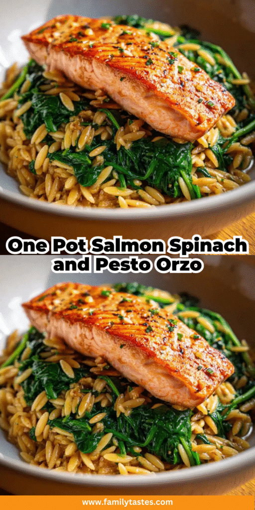 One‑Pot Salmon, Spinach & Pesto Orzo