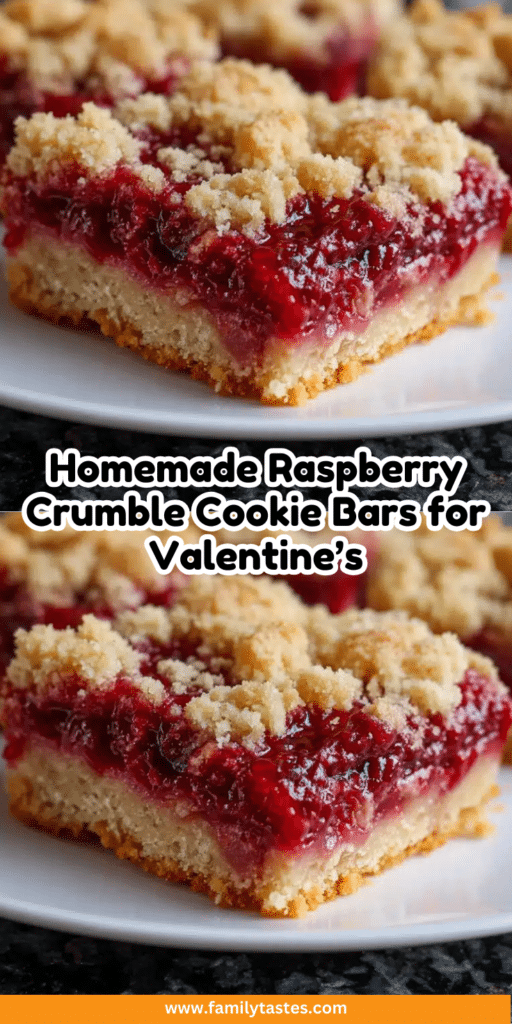 These raspberry crumble cookie bars are a sweet treat perfect for Valentine’s Day or any occasion.