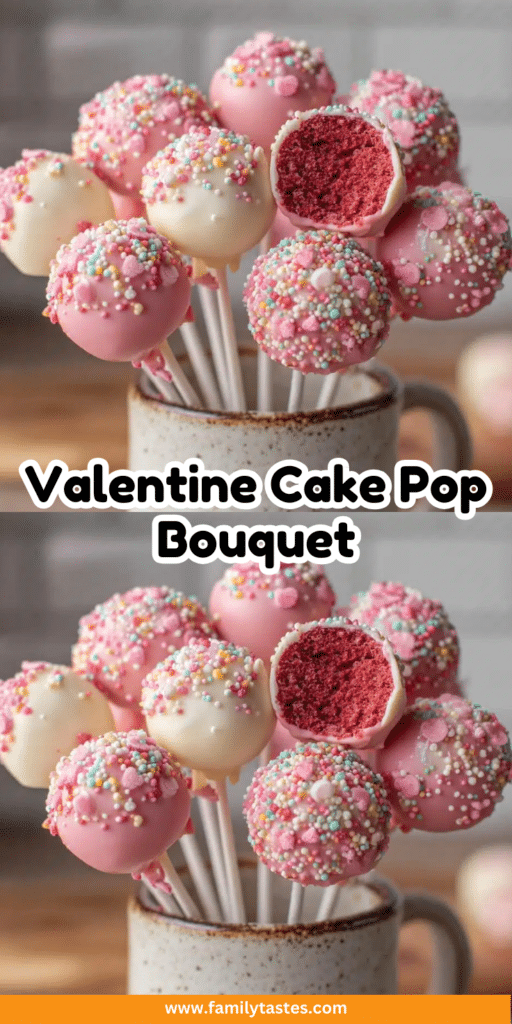 Your Valentine Cake Pop Bouquet deserves a special presentation! I love pairing these with mugs of rich hot cocoa, the pops make perfect dippers. For gifting, wrap the whole bouquet in cellophane with a big satin bow, or tuck individual pops into mini treat bags with handwritten tags. Either way, hearts will melt faster than the candy coating! For more sweet ideas, check out recipesloop.com for inspiration.